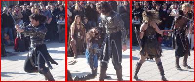 En estas tres fotos vemos luchando al bárbaro contra una guerrera que, como vemos, fue arrastrada en público de los pelos y... ejecutada. Ya en la foto de la derecha la amazonas luchaba con codicia contra el nórdico, que, poco después, cayó eliminado tras quedar a espensas de la increible fortaleza física de la amazonas que armada con su jabalina parecia invencible.